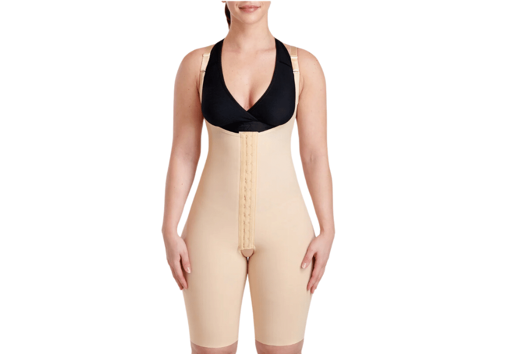 Sa structure anatomique épouse les courbes du corps, favorise la cicatrisation et aide à réduire les gonflements post-opératoires. L’ouverture à bords infinis assure une transition fluide entre la compression et le soutien doux, tandis que les bretelles réglables et la fermeture avant par crochets et œillets permettent un ajustement précis au fil des jours.