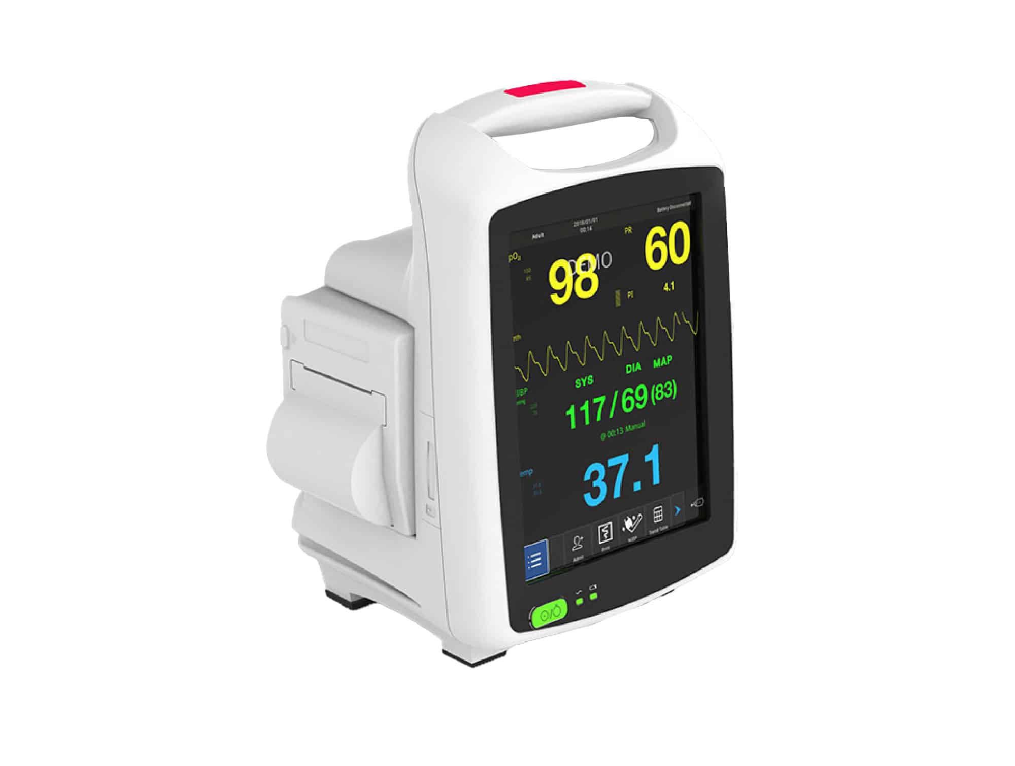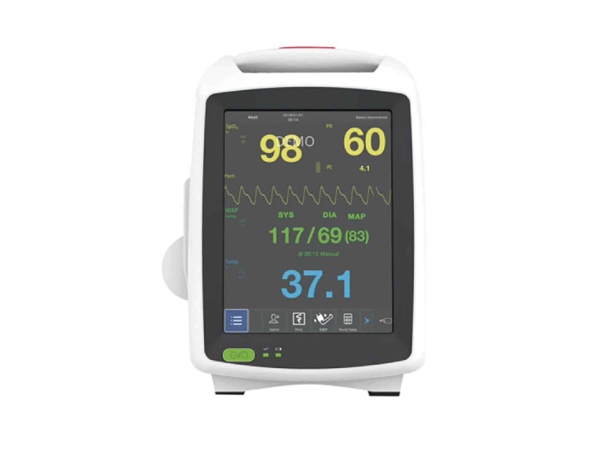 Moniteur patient Screen Touch est un moniteur de signes vitaux universel pour diverses applications cliniques. applications. Il s'agit non seulement de fournir une vérification ponctuelle de base des signes vitaux, mais également la fonction de surveillance à long terme comme l'ECG et l'EtCO2, qui donne à IRIS le fonctionnalités supplémentaires pour une surveillance continue, et en fait un appareil parfait pour différents services de l’hôpital, des cliniques et des cabinets médicaux
