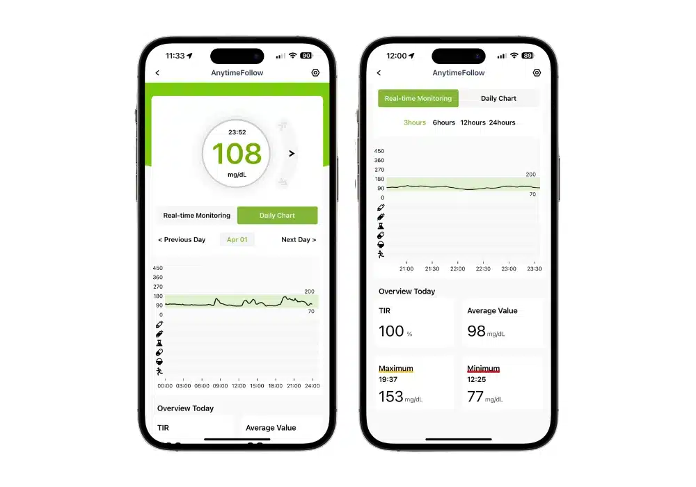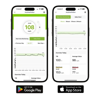 Contrairement aux capteurs concurrents, qui doivent être changés toutes les 1 à 2 semaines, l’Anytime vous libère de cette contrainte avec un capteur durable qui ne nécessite pas de remplacement fréquent.