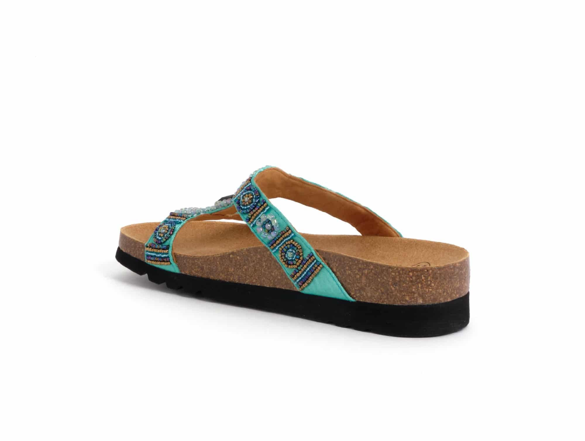 - Tige colorée et artisanale : tissu orné de perles multicolores tressées à la main, pour une allure lumineuse et unique